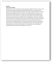 "People sleep better. People interact with other people better. I am one-thousand percent better when I do it. Meditation Bob: He's got it!"